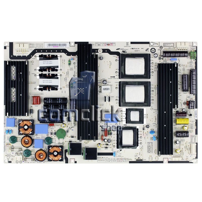 A Placa Fonte da TV Samsung, conhecida também como PCI Fonte de Alimentação é responsável por energizar todos os outros componentes do televisor, geralmente o cabo de força é plugado diretamente nela. Em resumo, é essa peça que faz a TV ligar! Normalmente a placa fonte é danificada quando ocorre oscilação de energia, ou descarga elétrica. Por isso aconselhamos retirar sua TV da tomada em dias chuvosos.
